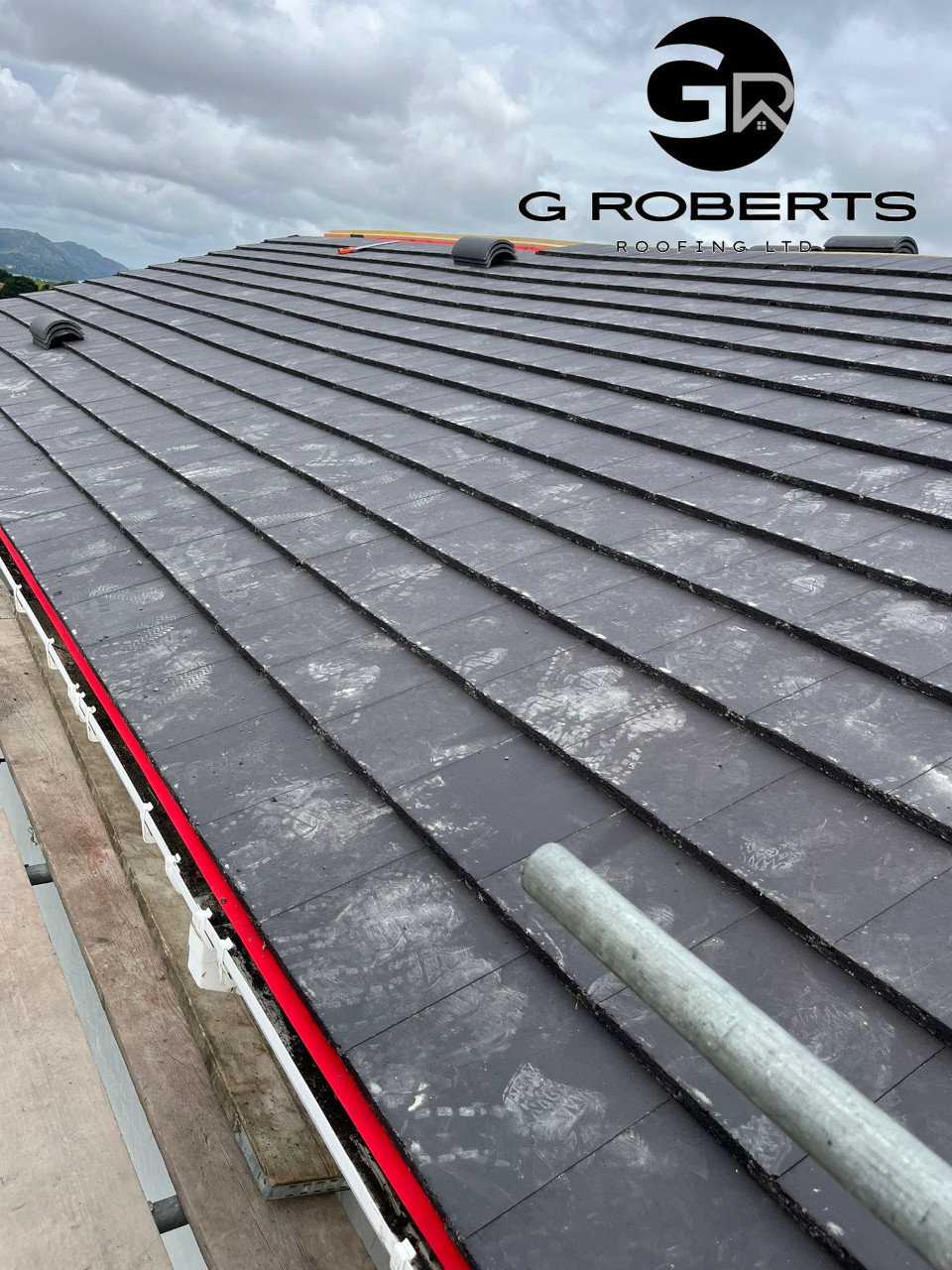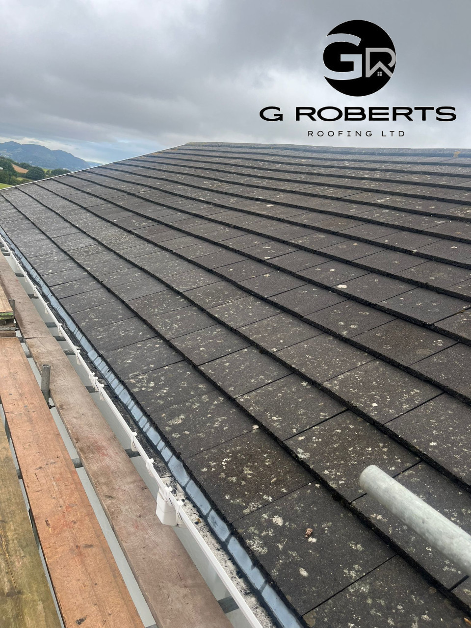 Installation of a new concrete tiled roof to a house near Llangefni.